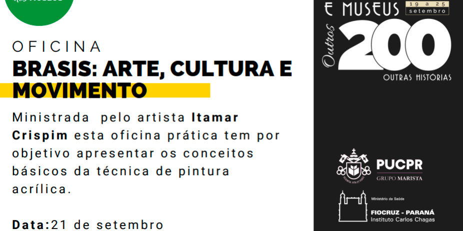 Até o próximo dia 7 de outubro, Itamar Crispim estará em cartaz no Centro Cultural PUCPR com a exposição “A Ciência Caiu Na Tinta”, com impactantes obras revelando o universo microscópico vivenciado nos últimos 30 anos como servidor da Fiocruz. Na oficina, o artista plástico irá tratar dos conceitos básicos da técnica da pintura acrílica.